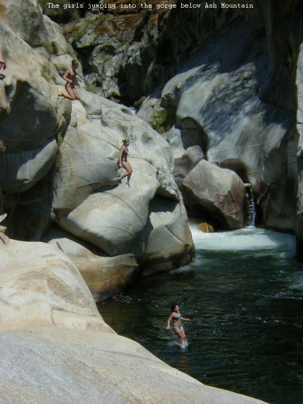 • The Girls Cliff Jumping into the Gorge below Ash Mountain.