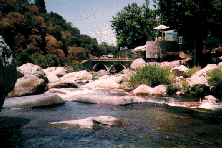 Flood of Jan 97 Update: The 5 ton bridge was washed away in the flood and replaced with a 20 ton version. Compliments to Southern California Edison Company for removing all the old wreckage from the river. The boaters really appreciate it.