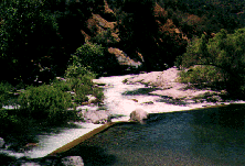 Flood of Jan 97 Update: The preferred exit to the confluence is now down the right channel under Pumpkin Hollow Bridge.