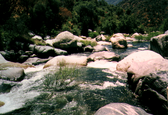 Look upstream at Hospital Rock Section (Class 5+) or the Ash Mountain Section (Class 5)