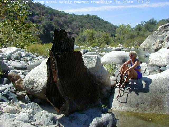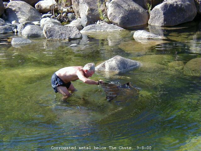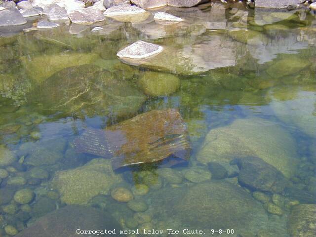 09-11-00 A large and ugly piece of a metal building was recently removed from the river below the Chute.