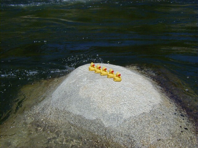 05-17-02 Yellow Rubber Ducks on the river. So far 9 coveted numbered yellow ducks have been recovered from the river following the rubber