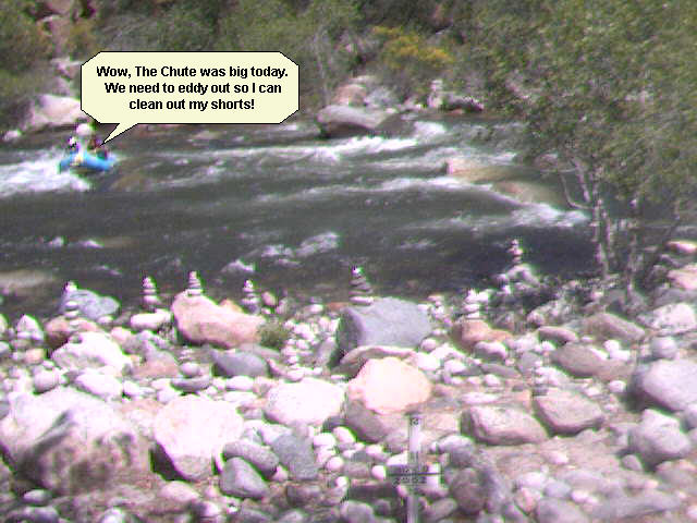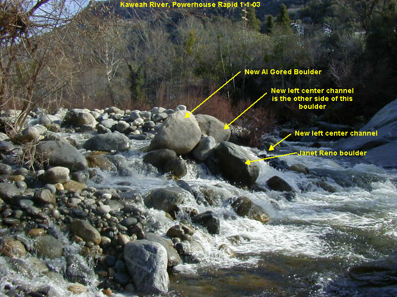 05-01-02 Old but good news. The Janet Reno Piton Rock in Powerhouse has moved downstream 15 feet to a safe and stable position nearly
