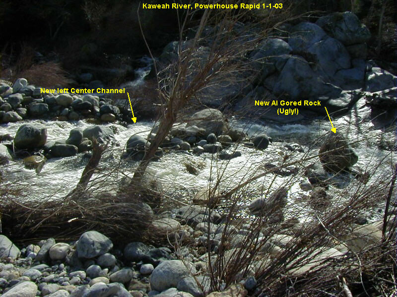 in the pool below. The center channel is safe (but still knarly) to run again. The rock has repositioned itself with both favorable