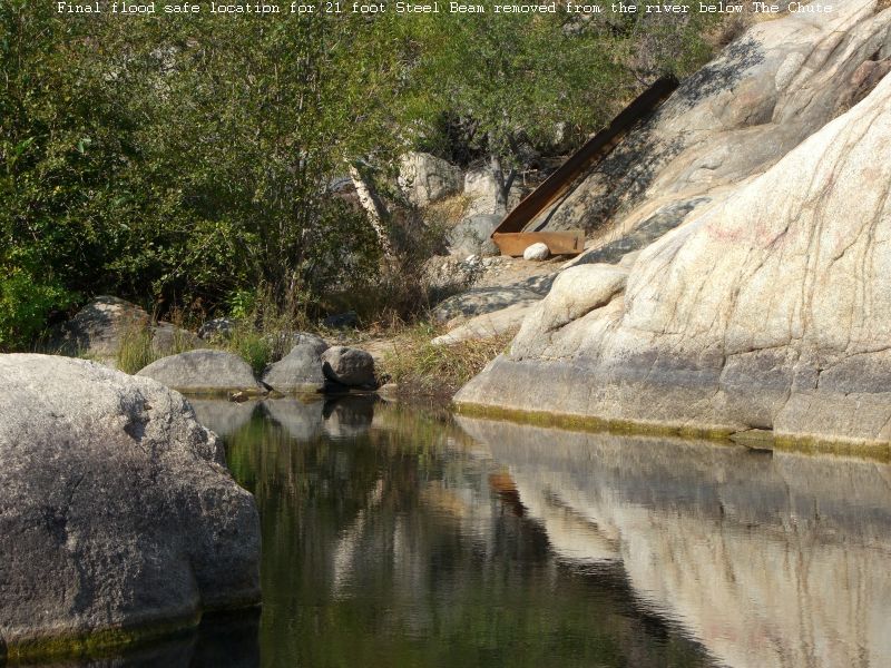 the I-beam was stuck in the mega boulders to the right of the main drop at The Chute. We now boat right over