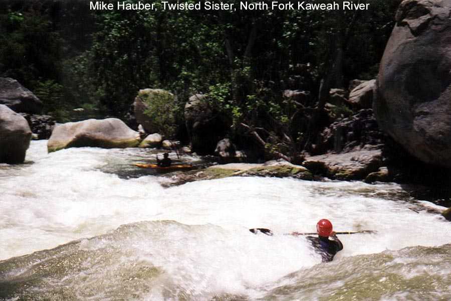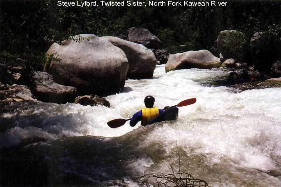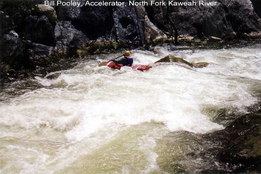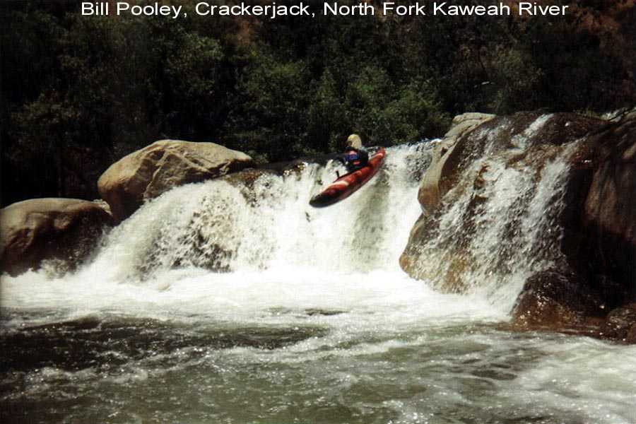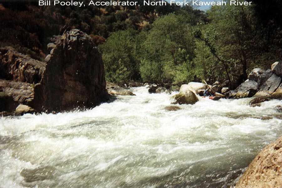 I was boating on the Kaweah and it's tributaries for a total of three weeks this season. The second two week trip with Steve Lyford saw 9 consecutive days on the North Fork between 1.9 ft.and 1.45 ft. We did an exploratory run from 4 miles up the South Fork and numerous runs above and below Dinely Bridge on the main Kaweah. We also got down on the Tule for 2 runs. It was a big water year and the North Fork was running through July 12th. --Your Kaweah Webmeister, Bill Pooley--